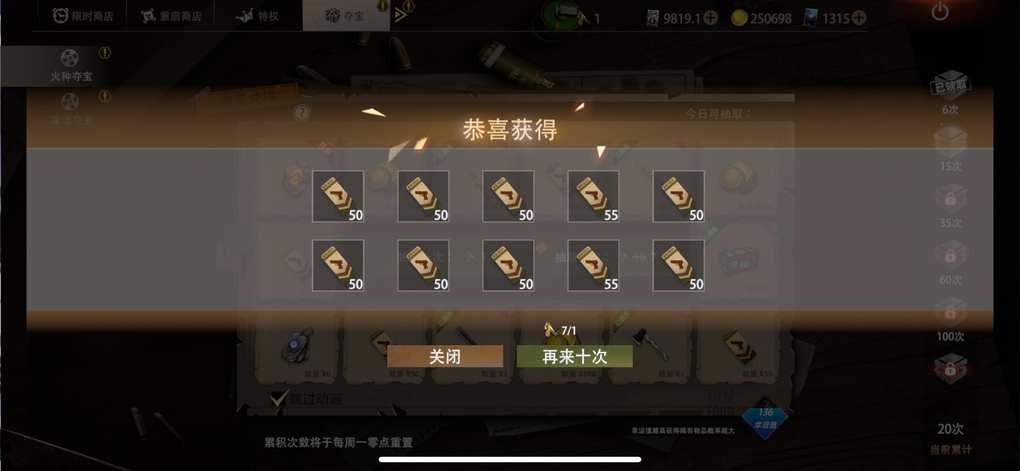 攒了10个箱子 能开出25个钥匙碎片