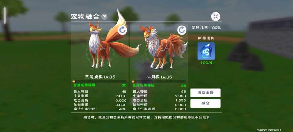 资质会移出来最好一个极品一个一半资质融合