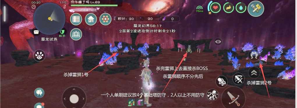 单人就放2-4个基础塔守家再去杀雷狮杀boss