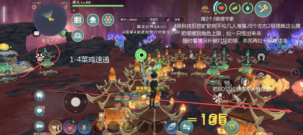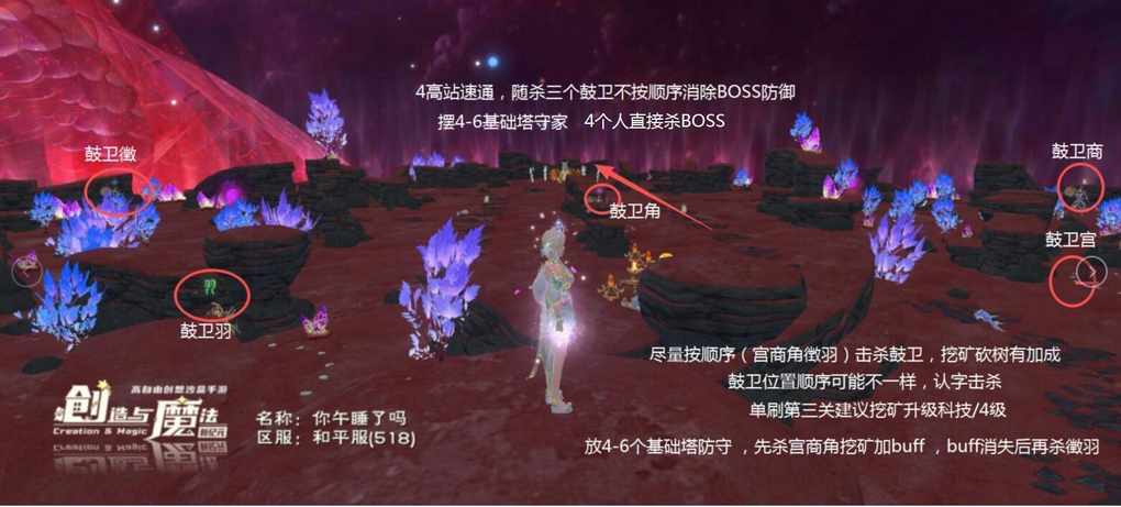 B方案(适用菜鸡1-4人): 进去后摆4-6个基础塔守家→按顺序击杀宫商角后开始挖矿升级科技到第四级→杀掉画鲛→做两个2级塔拆boss →继续挖矿砍树(🉐积分领基础奖励)