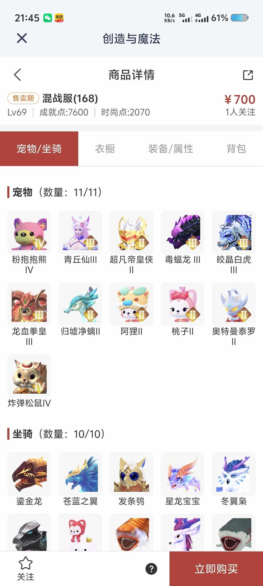出此号,价格可谈,链接后面快来看看新上架的角色~区服:混战服(168)-角色等级:Lv69https://cbe.yingxiong.com/?to=%2Fcm%2Fgoods%2F288391&gameName=cm来自舱宝鹅(创造与魔法)