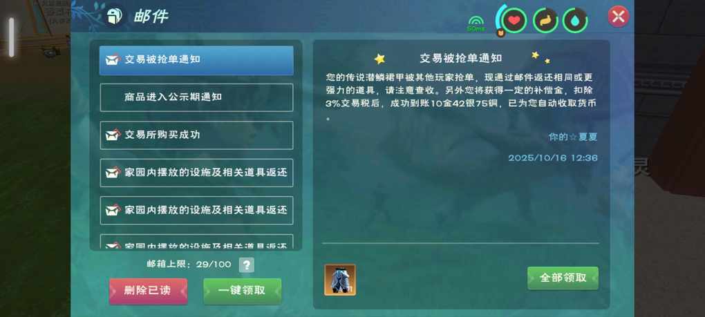 本来想出466的附魔裤的,没想到把468的裤子看成466的裤子挂上去了,本来应该是要血亏100多金的,但是不知道哪个大哥给我裤子抢了,468裤子又给我送回来了,我特么不仅没亏还赚了10金币_[/创魔-憨笑]