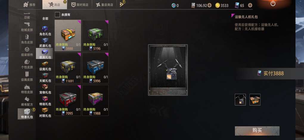 获取方式大厅点击商城—商店—特惠礼包—载具礼包,如图奉上