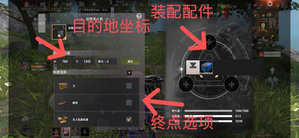 2:放置运输无人机选择目的地
