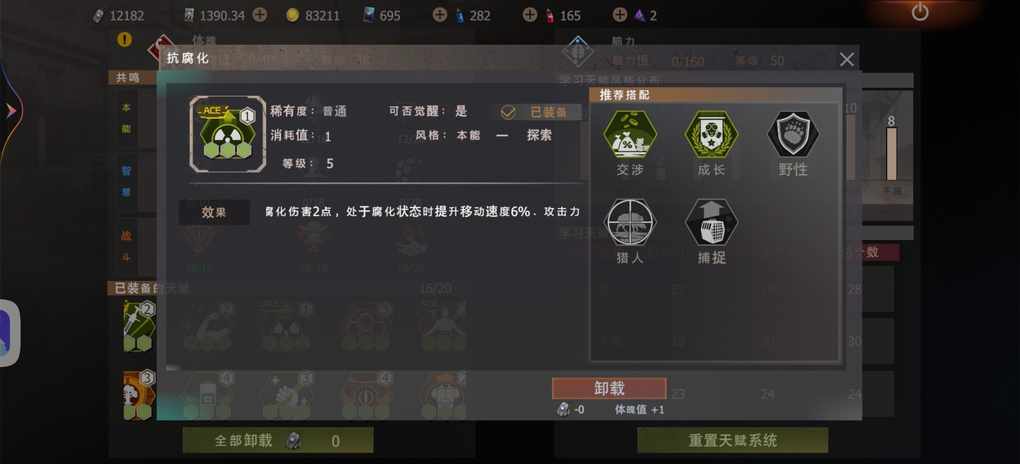 (2)非战斗型天赋主要带的本能系列的【采集】和【抗腐化】,另外推荐带【潜水】。