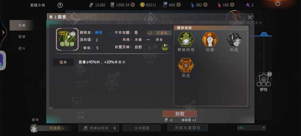 (3)本能系列带的有【体格】、【肾上腺素】和【绝境】,都是比较常规的。如果偏战斗且不怕麻烦,可以考虑用【召唤】、【均衡之力】和【黑暗料理】卡伤害。