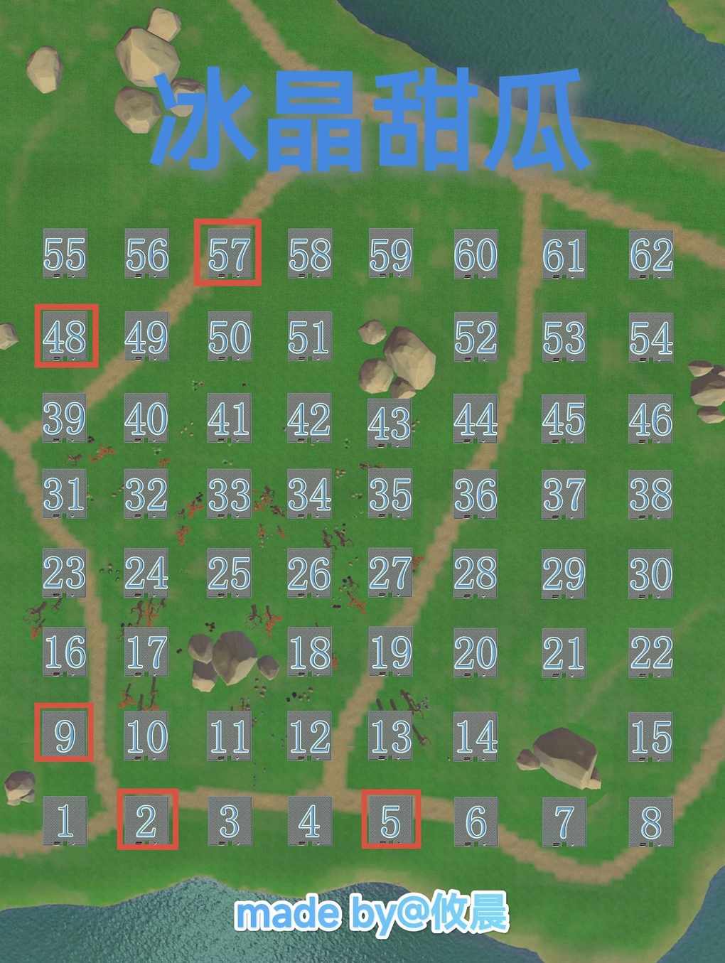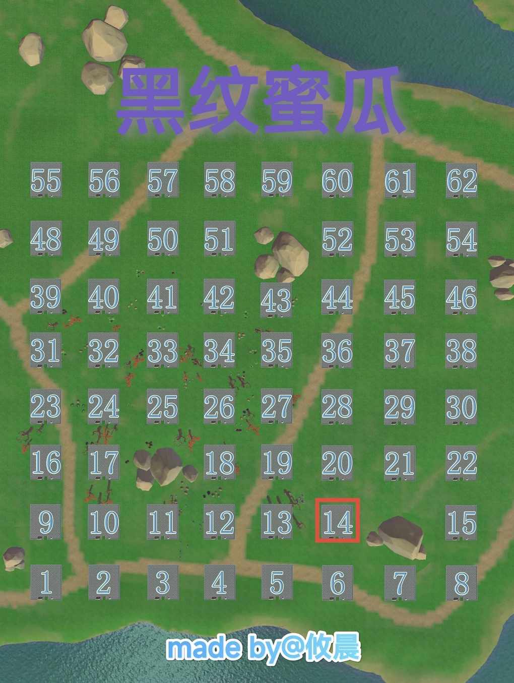 各位小伙伴们好呀 又到每周一更新农耕台瓜价的时候啦! 今天依旧给大家分享的是 第9群岛落叶平原附近的满价瓜位 (瓜位有效期限:2025.10.20.~2025.10.26.) 本瓜田位于第9群岛落叶灯塔附近的金贝草原 ↓ 接下来是各类满价瓜位分布图