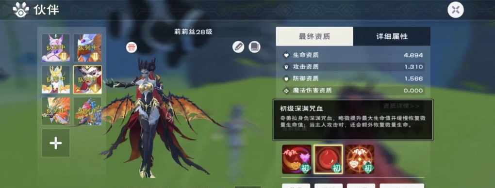 奇美拉进阶测评感觉他攻速挺快的伤害也不错还可以通过我们攻击回血什么的,挺续航混战减抗比较强和平刷怪也还行