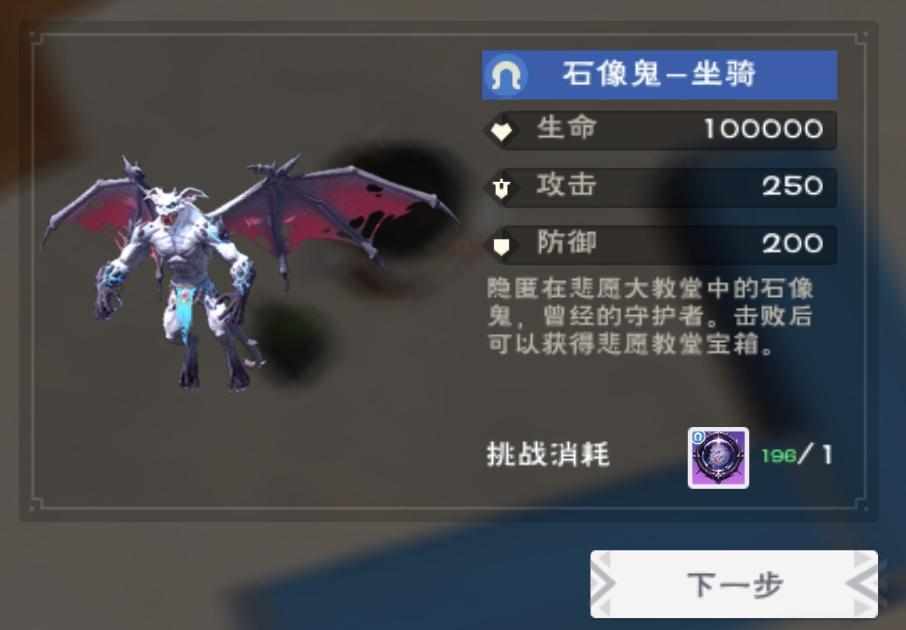 冒险者工会击败石像鬼后领取宝箱(仅发布者可领取)打开后获得若干石像鬼碎片,400个碎片直接使用即可获得石像鬼坐骑