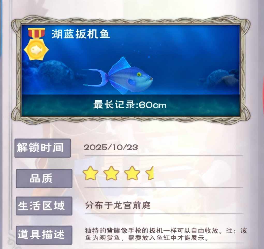 湖蓝扳机鱼:(判定条点3次)