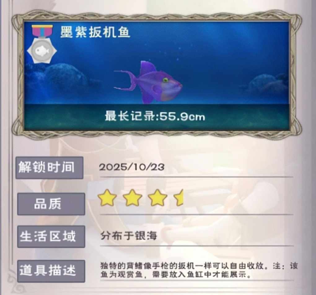 墨紫扳机鱼:(判定条点3次)