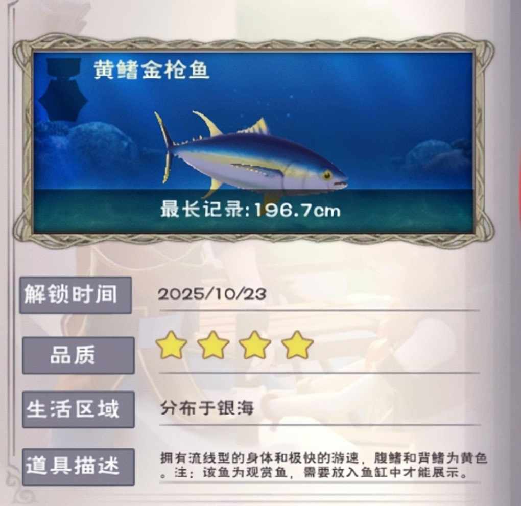 黄鳍金枪鱼:(判定条点5次)有金牌成就