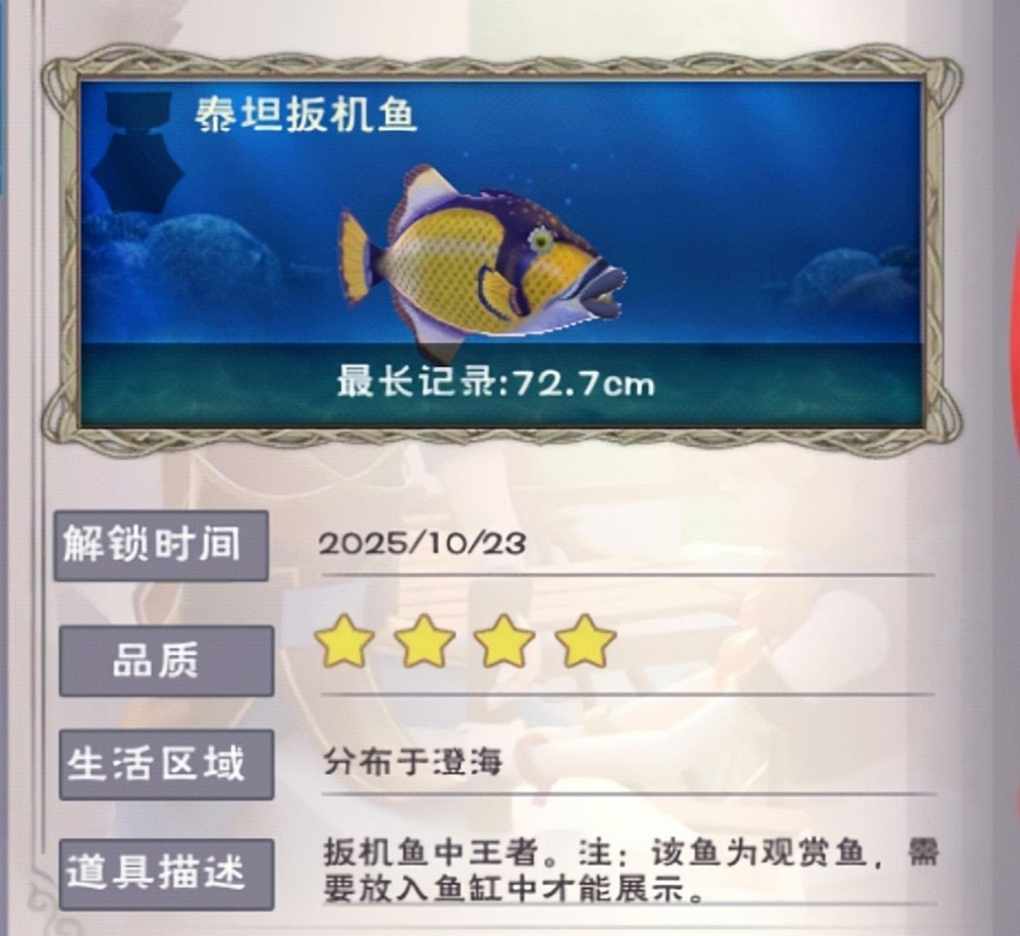 泰坦扳机鱼:(判定条点5次)有金牌成就