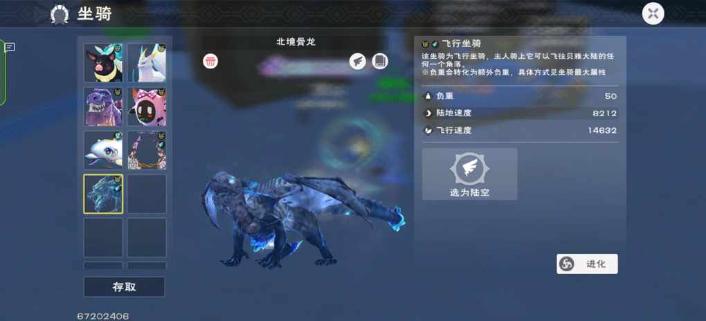 存了三天的饲料包加交易所各种买冰草终于骑上骨龙了好消息:玩了八年终于骑上骨龙了坏消息:陆地速度废了,飞行速度也废了简称:双废