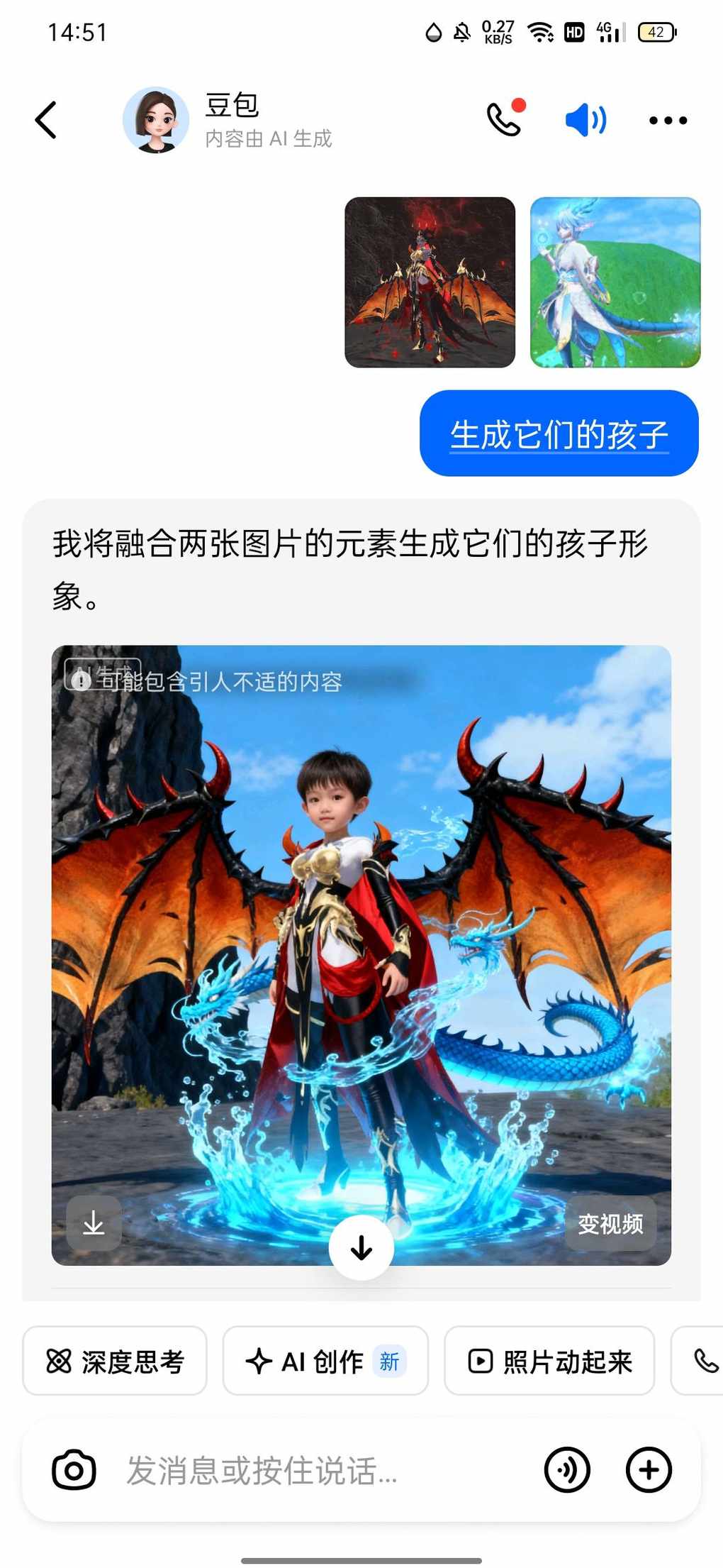 太师shuai了结合两者的元素(火焰恶魔的“炽”、海龙的“渊”),可取名为 “炽渊灵裔”。“炽”呼应上方角色的火焰与邪恶气息,“渊”关联下方角色的水系海龙渊源,“灵裔”则体现其作为两者后代的神秘灵韵特质,名字既融合双亲特征,又富有奇幻感。