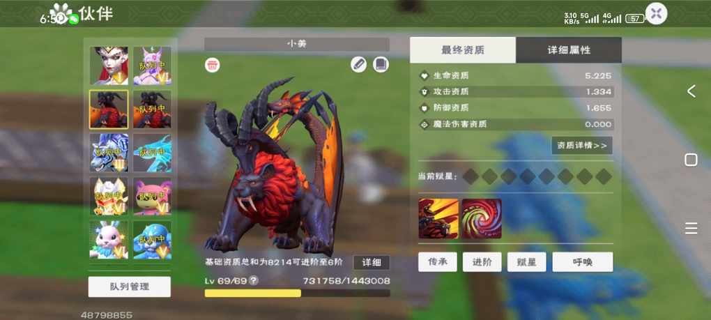 既然两个都是69级,也都在你宠物栏里,那你直接进阶了,通过传承去实际测试不就好了