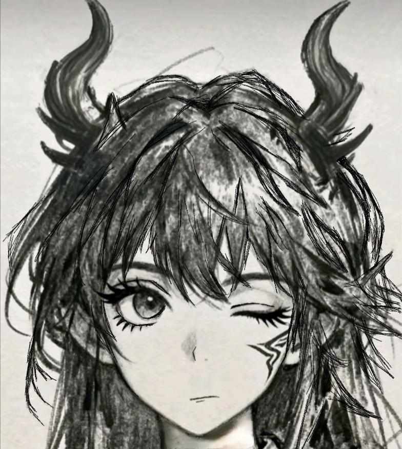 幻龙的角依旧画在头上,但是身躯侧面的符文印记我改在了右眼下边,因为当时突发奇想,印记在眼睛下方,然后使用符文交错时会睁开,然后闭上(男性幻龙在左边,且左边的眼睛才是闭上的,相反就对了)然后是坐骑,我个人是比较喜欢这种不长不短的发型,给人一种初恋的感觉,在这条编辑中圆了这个想法,所以叫"寻初续梦",至于"掣屿君临"我一开始是想画一个霸气的男性出来,"君临"也符合"天空之王"一词,但是衣服啥的我是真想不出来了,说实话 我不会画嘴和衣服,男性只画个头会留下大面积的空白,并且据幻龙的配色来讲衣服应该是蓝配青,更难画了,而女性则可以用头发填充,这也是我不爱画男画的主要原因(虽然说女性也没画衣服),但是一大片空白看着对我来说真的很难受,最讨厌画这玩意了,索性不管了 ,而名字后面带个"曲"是因为龙生九子的情节嘛,星海有多个乐器,我就想着用东西和大祭司交换一个乐器,拿着该道具去华胥星海和那些乐器交互,然后再去龙宫和一些道具交互,符合"曲"的主题,本来是想把发型做更乱的 这样更好看一点,画到一半想起来这是天空之王,乱糟糟像啥样子,就撤掉了原本那副稿,另外就是我有一些画模糊的地方看起来很真实,其实把成品画保存,然后在相册里用橡皮擦多擦两下就可以搞出这种效果,不需要大费周章染多种颜色