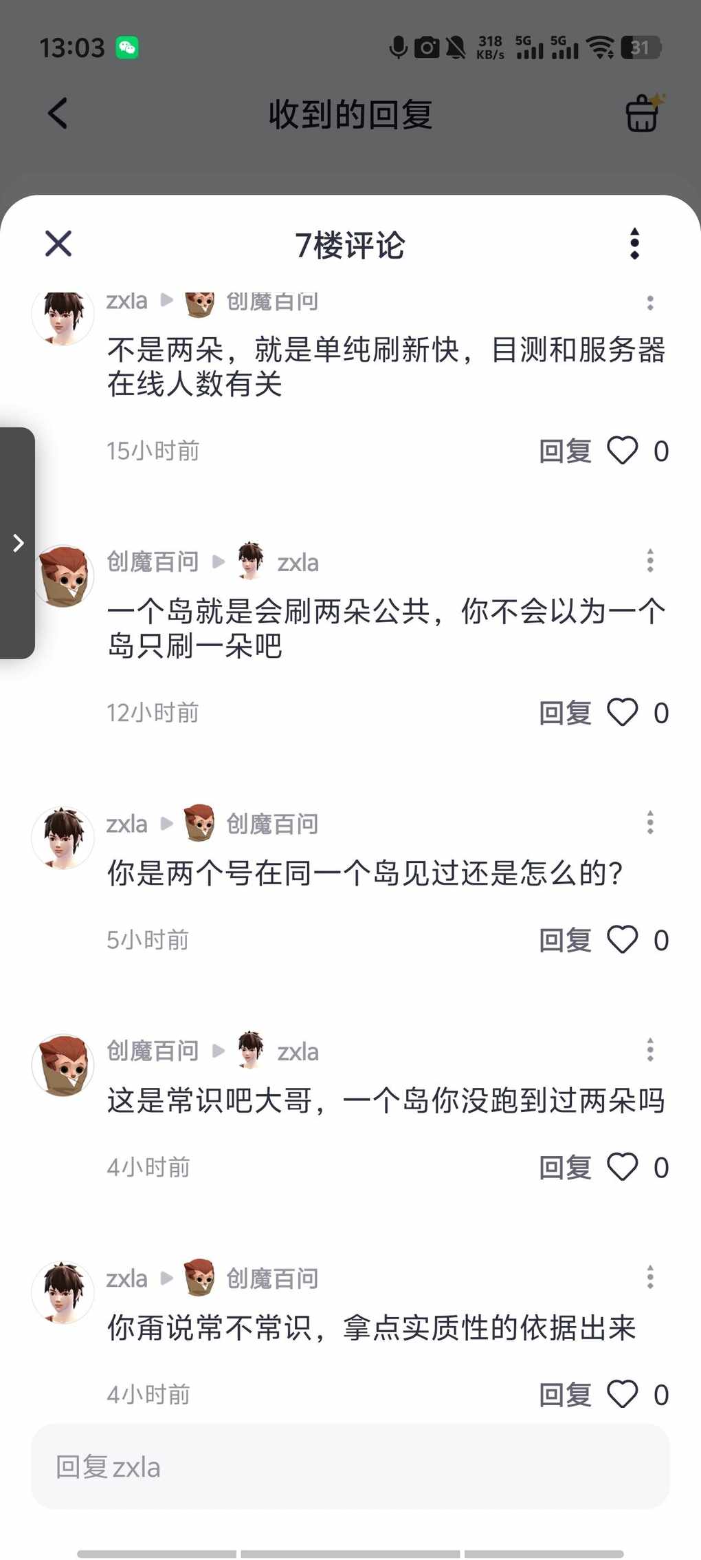 说的是紫花,他在同岛捡了一朵,刷了一会怪在另一个点位又捡了一朵,我说一个岛就是会刷两朵,他非说不是,又扯他自己的理论