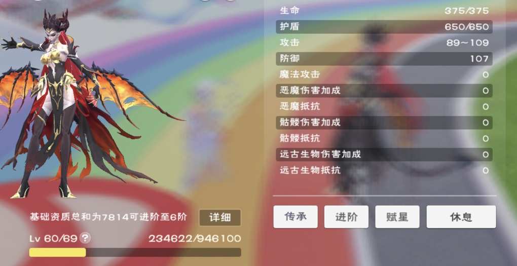 我的60级生命375 攻击89-109 一阶大漂亮没挑过测评师池水龟所以资质上的差别还是挺大的,资质好的能打两只,资质不好的一只也打不过。我没有6阶,其他的我没啥好多说的