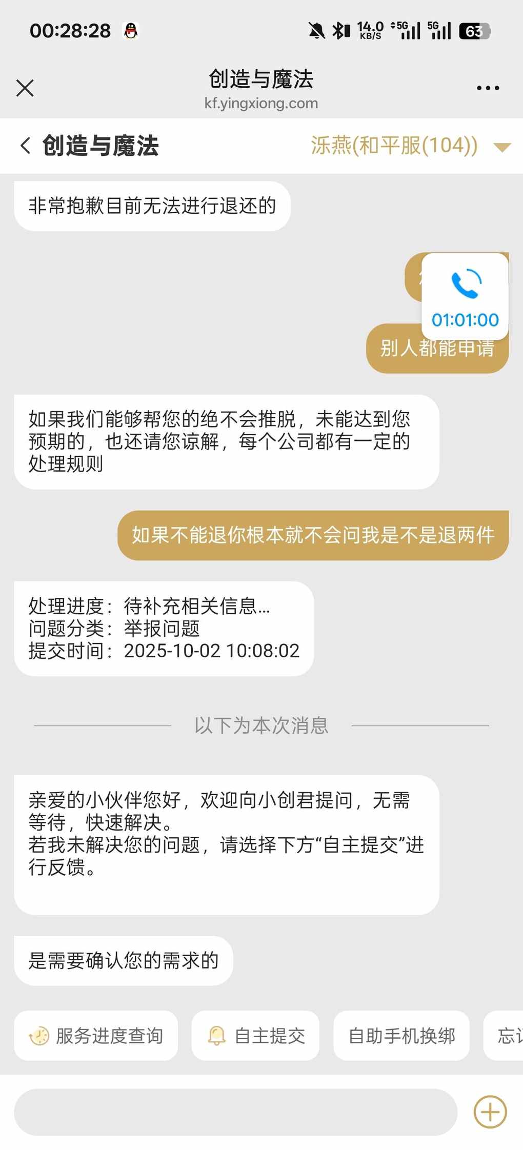 不给退的。最后还是我打了北京市监,半天就给我协商了哈哈哈
