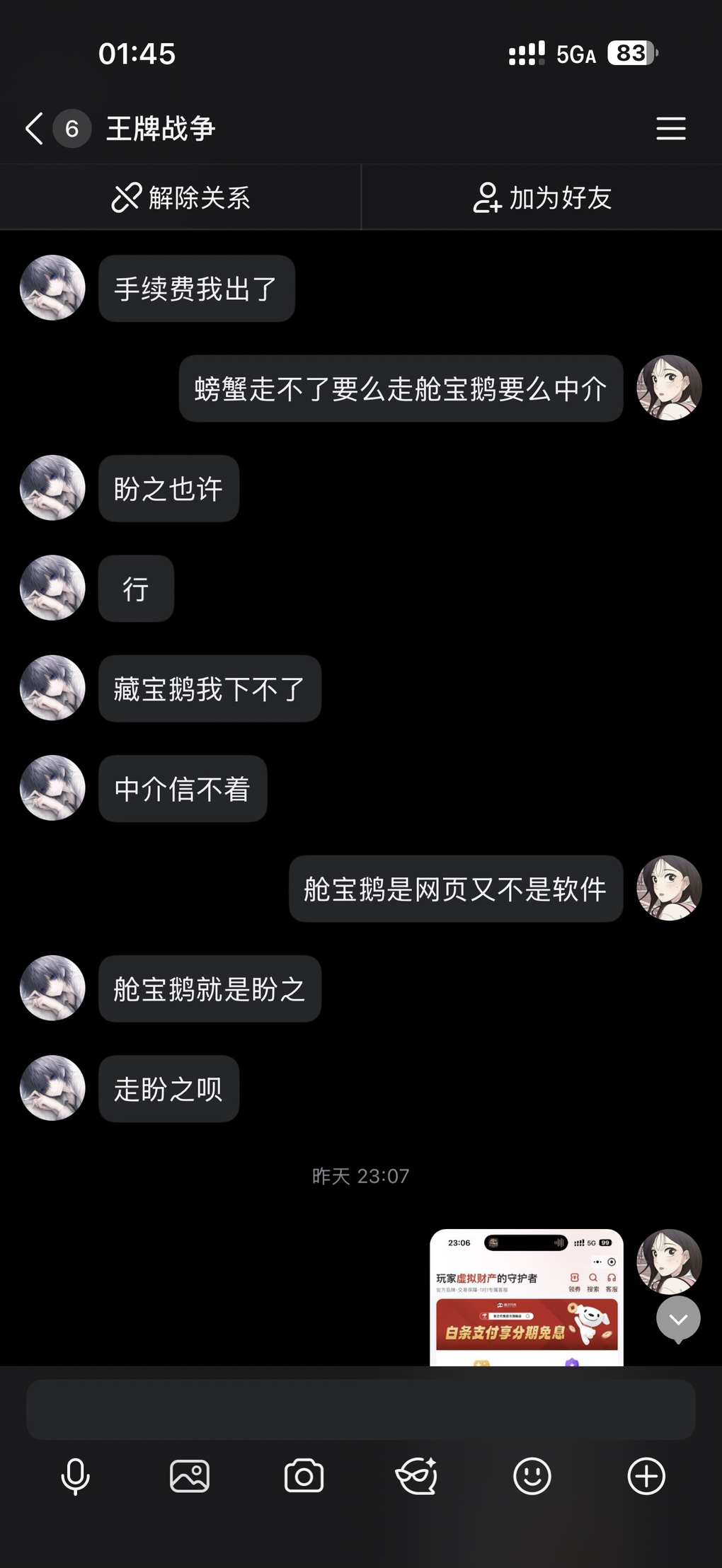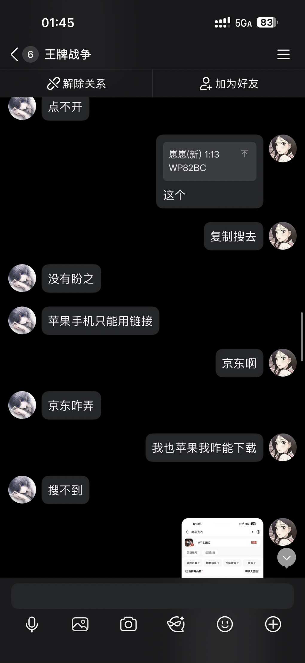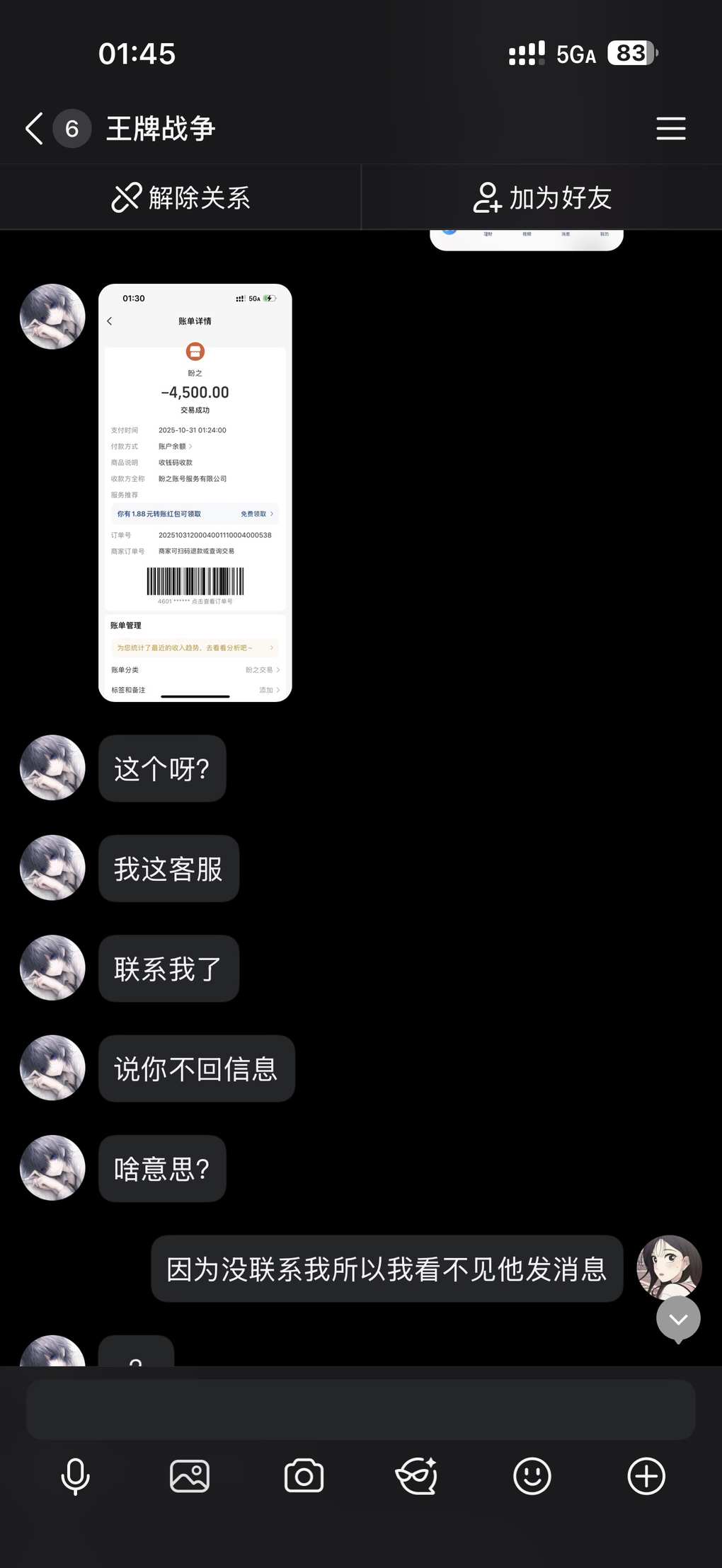 一看是说信盼之我给搞了然后找不到盼之在哪差点没笑死我,我就没揭穿的让他继续演,然后安排网页客服,盼之买过号都懂是人家直接建群的,我就没好意思点破他