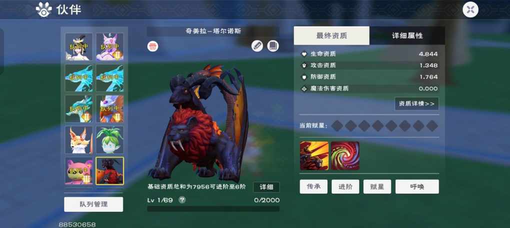 我自己孵化的奇美拉,生命有点差 但是极品防御,对比了下19的6阶,我的比他那个差很多吗 我的初始92血13防好像