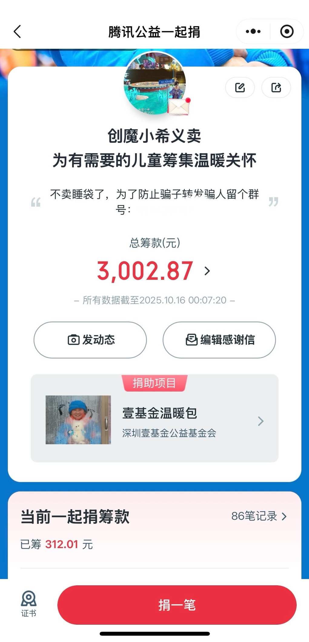 当然,具体可以通过腾讯公益小程序关注壹基金温暖包项目。