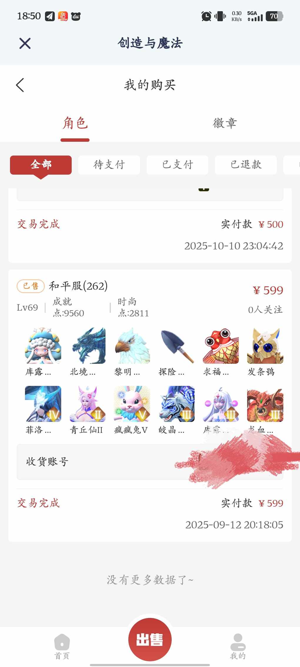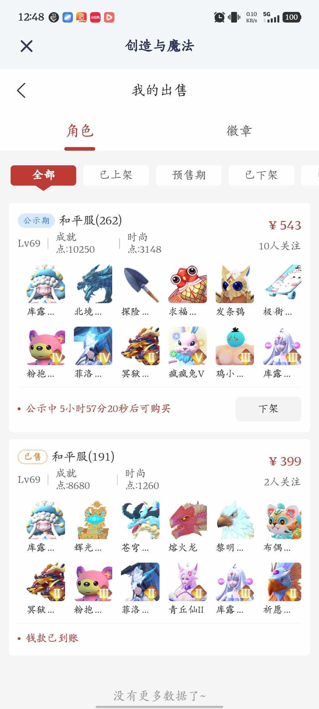 能卖掉已经不错了我三千服饰的五阶狐狸都550都没人看
