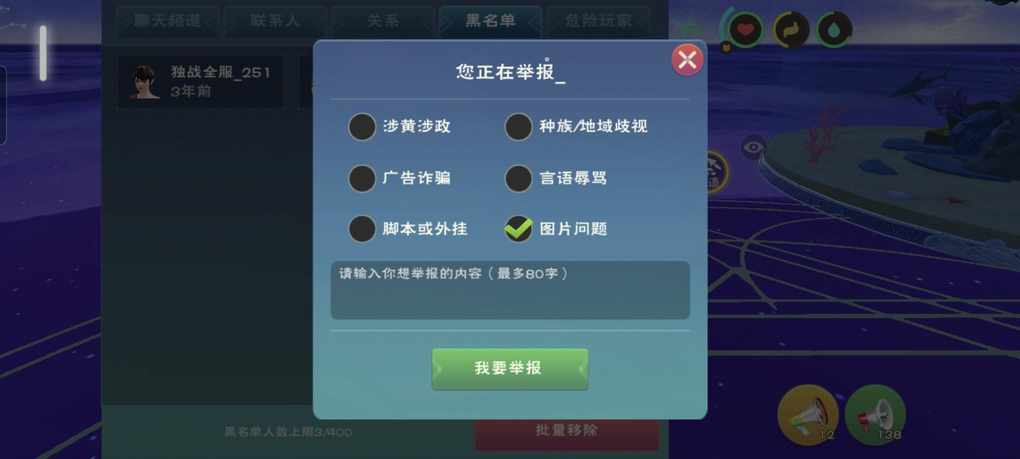 举报原因是图片问题是啥情况?果然举报选项真是摆设,游戏内能发自定义图片吗?