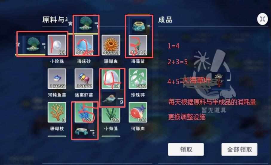 每个人抓的鲛人属性不一样,没办法固定教设施摆多少,每天根据产出调整就行