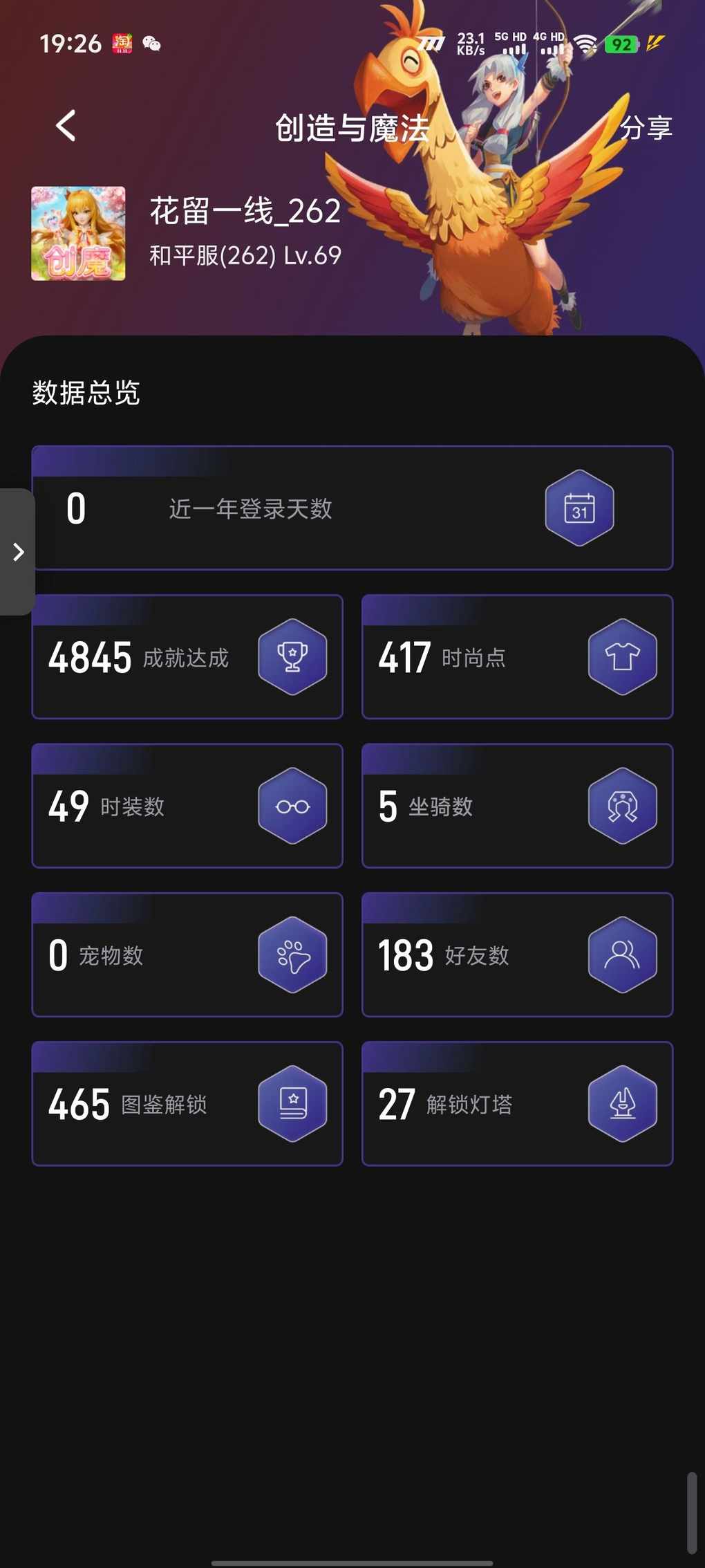 我五年前的号,第一次刚玩这个游戏,然后创的后面因为一些原因,然后号没了,比较怀念