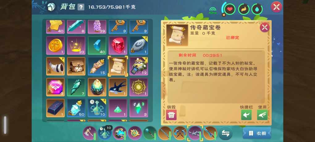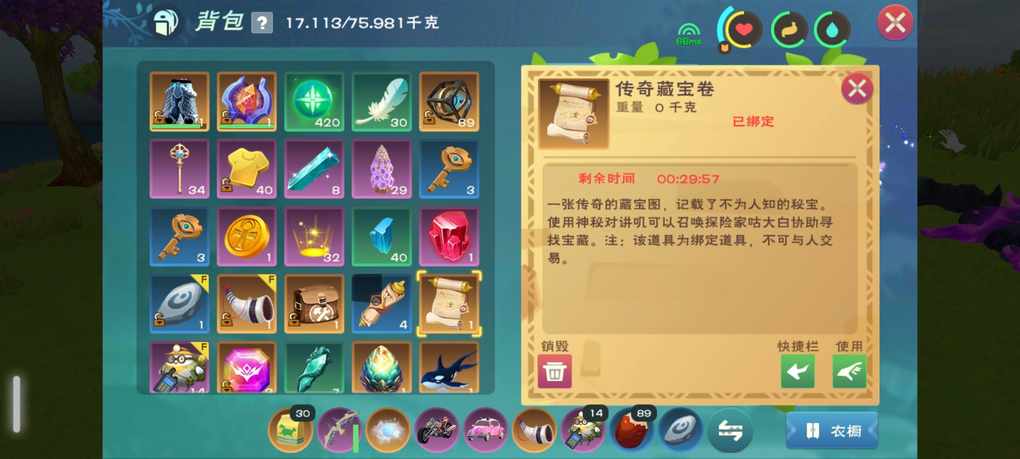 今天用巨资38金币,买了32张藏宝图,开出了这些东西,现在来看的话,传说的比例好像是3比1,30个出3个传说