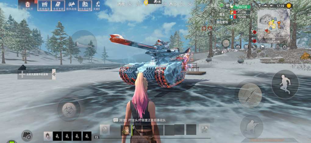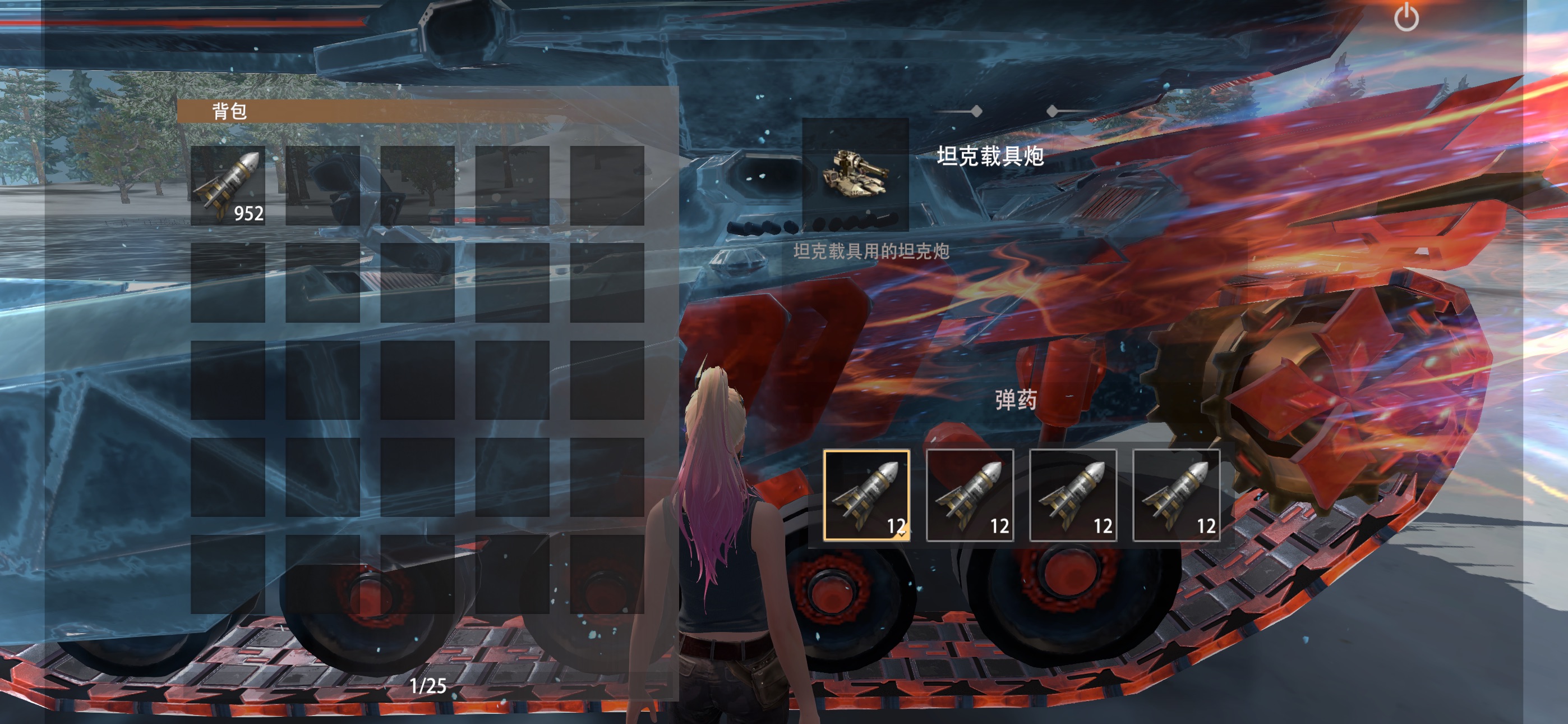 点击操作,右边显示坦克载具炮,点击使用