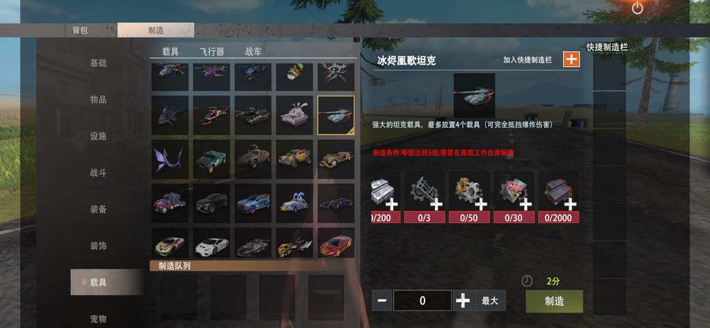 载具销毁或被损毁后,是不返还制作所需的材料,