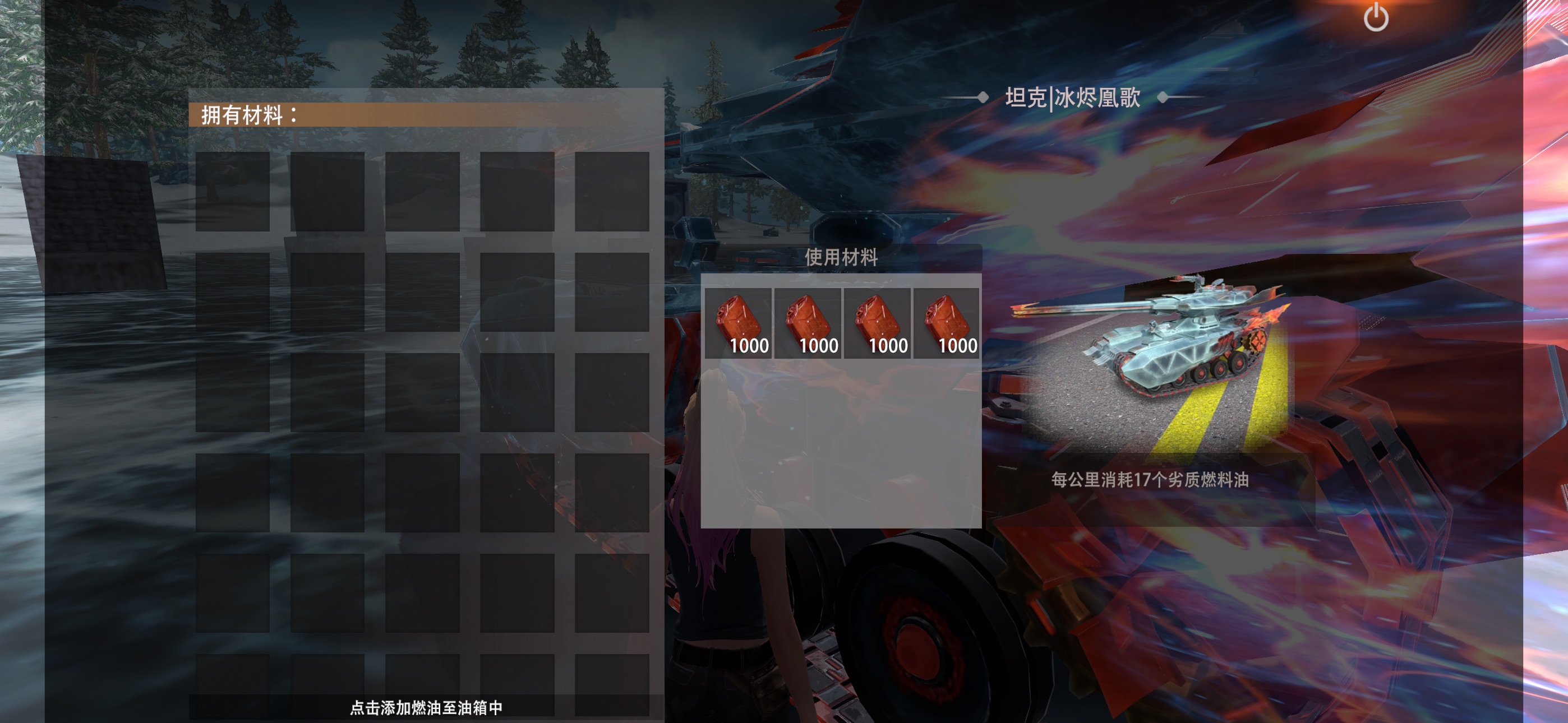 点击加油,右边是我背包所拥有的燃油