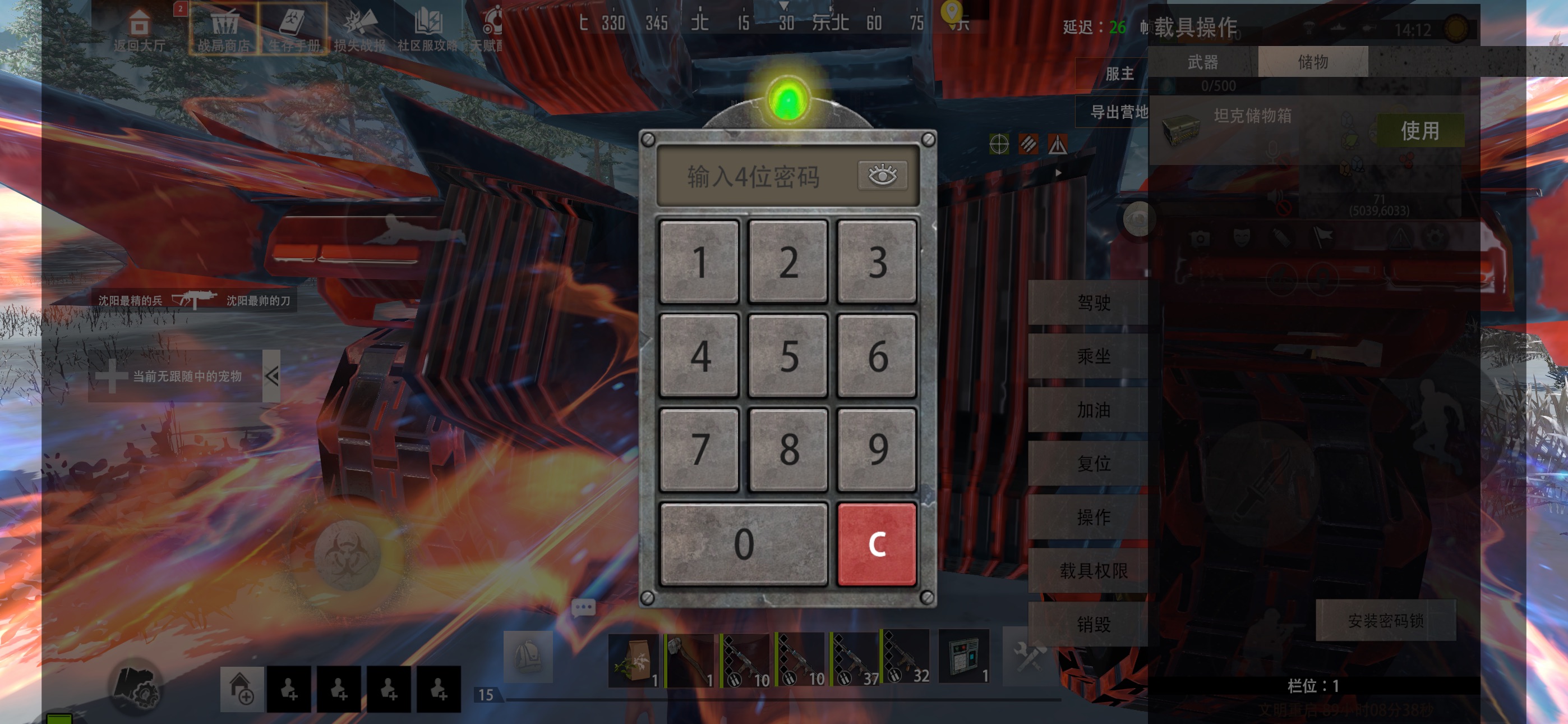 点击乘坐,使用坦克炮,乘坐示意图以及坦克弹对建筑的伤害如下