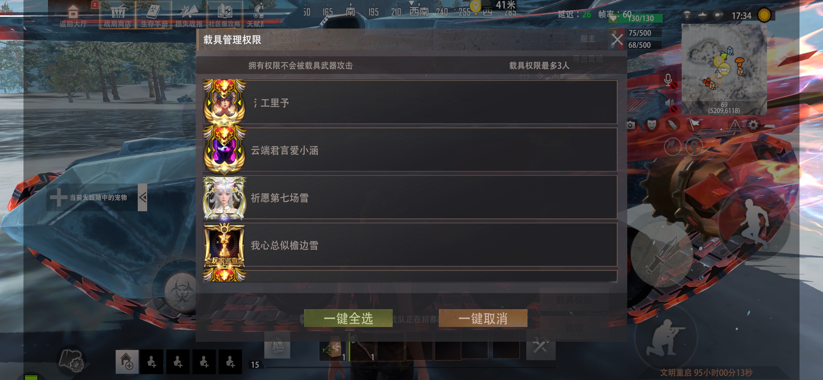 没有权限的玩家,不能对坦克进行任何操作