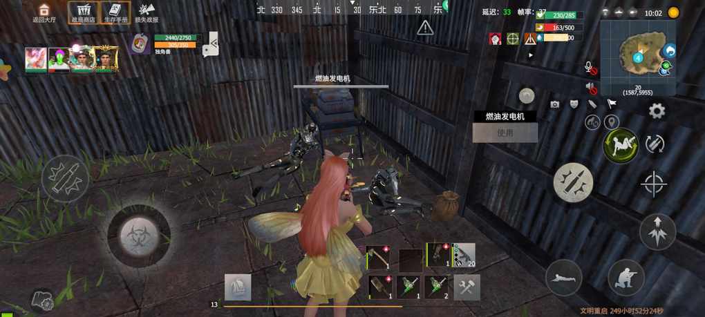 接下来咱们去第二个物资点。同样的地方找到发电机,放少量油,转头还看物资箱的上方。