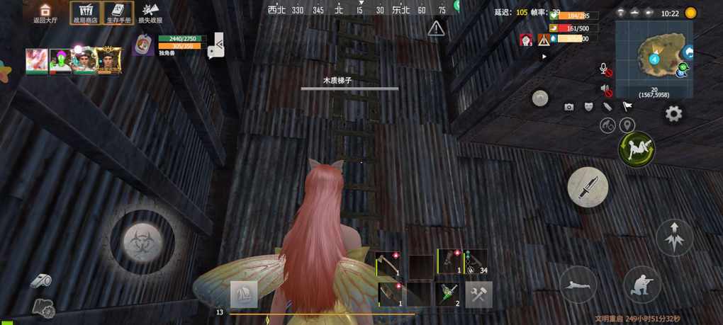 这是第二个物资箱的物资,也是这次目标的最后一个。拿完物资旁边就是发电机,放少量油就可以顺着木梯向上攀爬了。