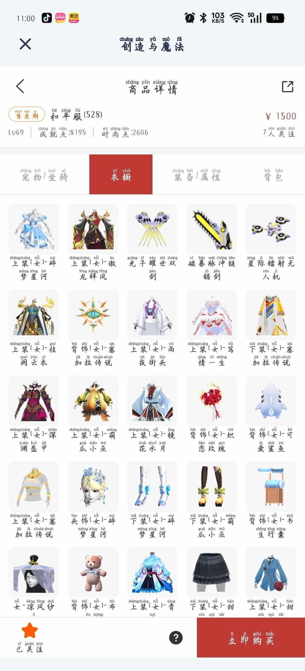 快来看看新上架的角色~区服:和平服(528)-角色等级:Lv69 https://cbe.yingxiong.com/?to=%2Fcm%2Fgoods%2F319722&gameName=cm 来自舱宝鹅(创造与魔法)