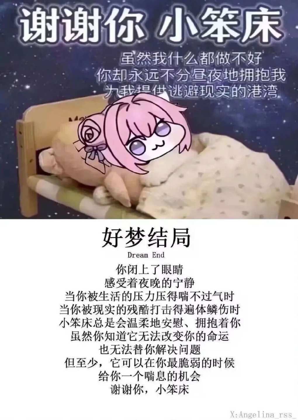有个能避风避雨的的地方,再有张床,就是一个小家了,当你最累的时候,只要躺上去,盖上小被子,就是打工人/读书人最开心的时候了,在这宁静的夜晚,躺在心爱的床上,我沉浸在无边的思绪中,感受着温暖的拥抱,不管是在游戏里,你也拥有自己小床吗,阁楼摆满的箱子,但你唯独没有摆床,给自己喜欢游戏人物一个休息的地方,年初的时候,还是我一个人玩,空荡荡的房子,却在一个房间摆了一屋子的床。。愿每个人都能拥有属于自己的小家