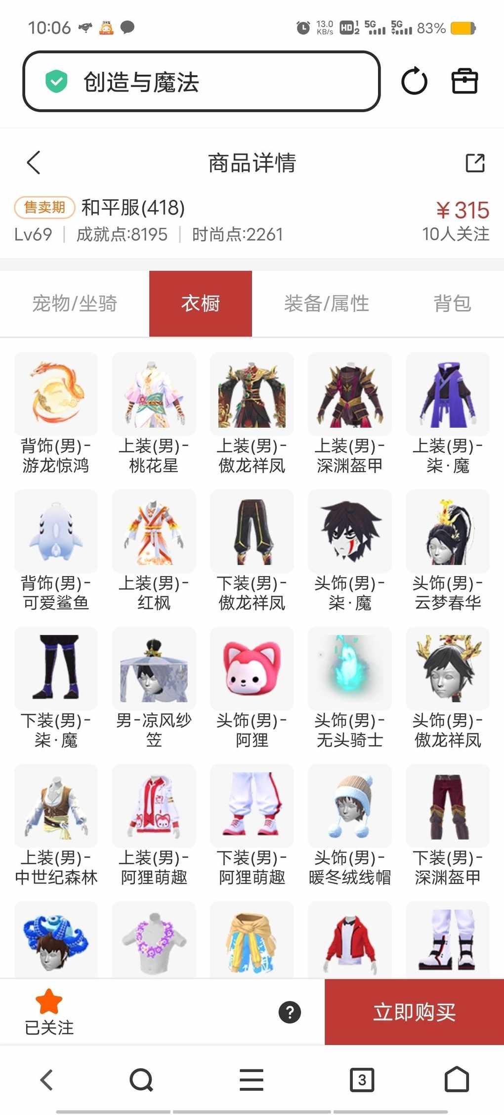 傲龙全套带背饰这个价能入吗