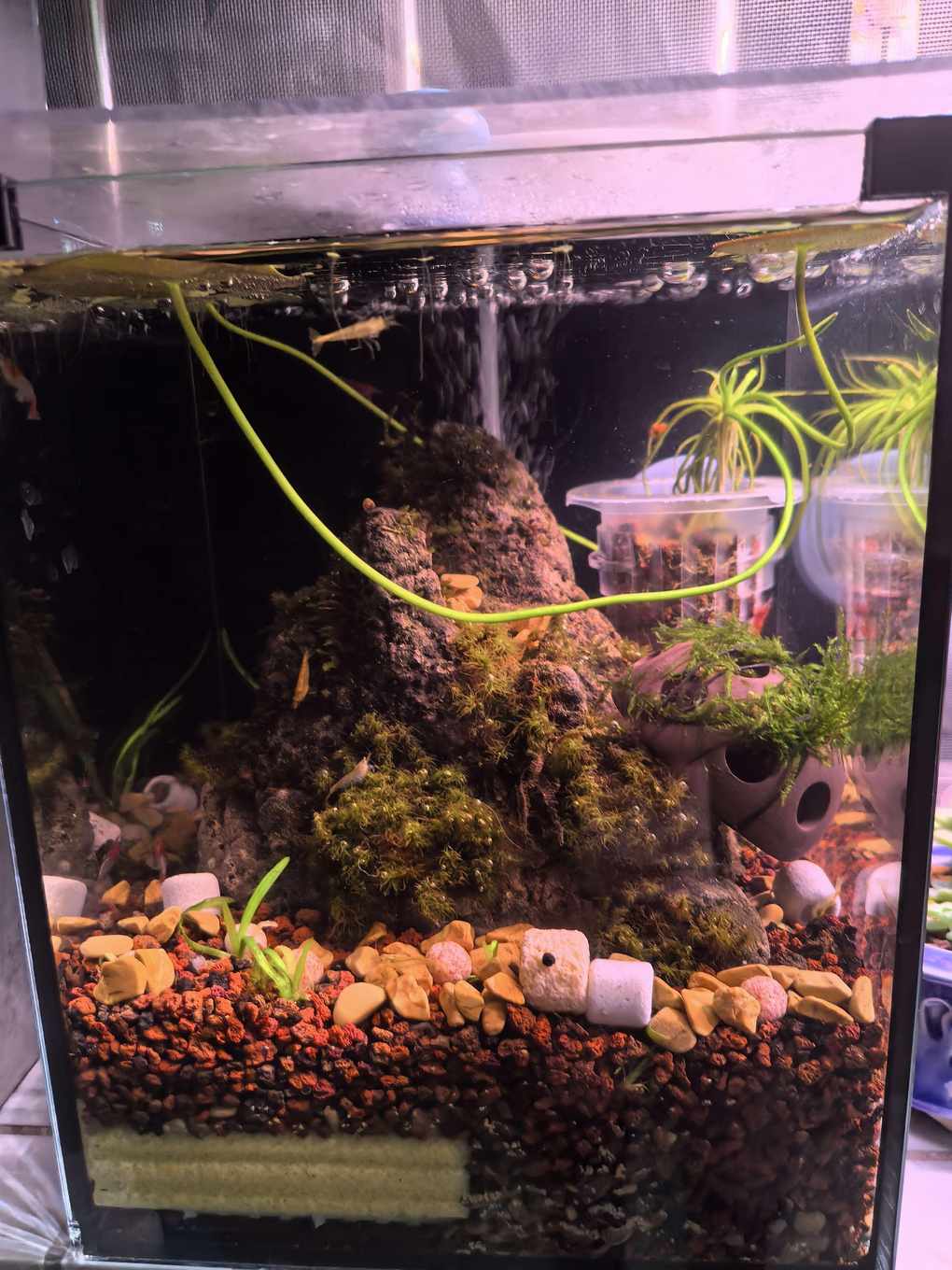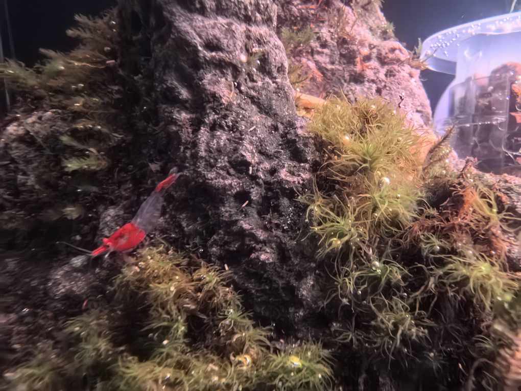刚开的鱼缸,先养几条带色的黑壳虾
