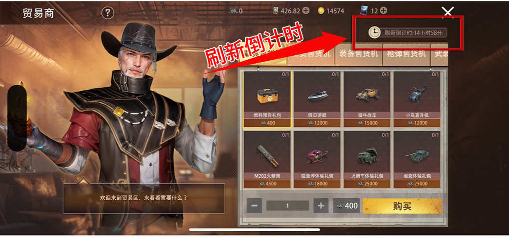 原来的贸易区售货机都被整合成贸易区商人,所有的贸易机都可以在同一个商人处购买啦!还增加了可以用零件交换的载具礼包和刮刮乐礼包!