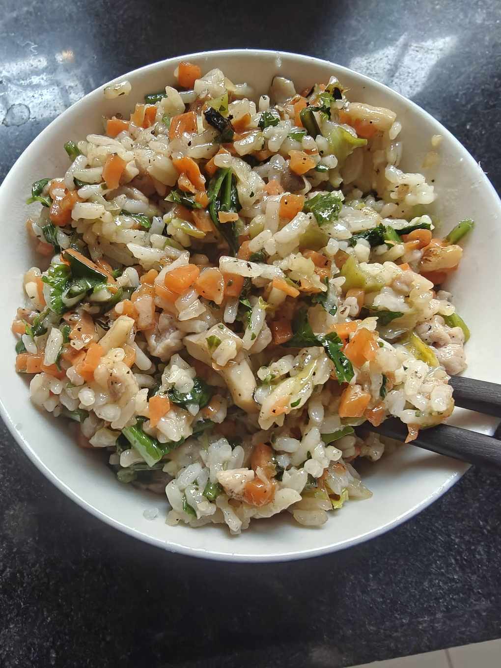 感冒了,公公婆婆说不能吃鸡蛋,就随便整点菜,做大杂烩炒饭了