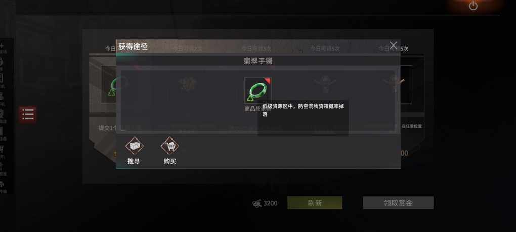 2:悬赏问题目前悬赏任务有些不合理,比如翡翠手镯的任务。拿一个翡翠手镯换一个徽章碎片。可是问题来了,翡翠手镯在低级资源区的防空洞概率获得,那玩中高级资源区的人怎么获得?建议调整悬赏任务