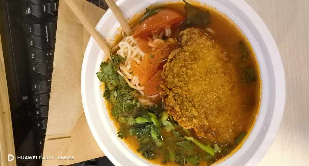 #午餐·番茄炸鸡排拉面🍜Day9.今天吃了个不是重庆的遇见小面。满满的科技与狠活的味道。包装做的挺好。12.9/周二/晴/22°