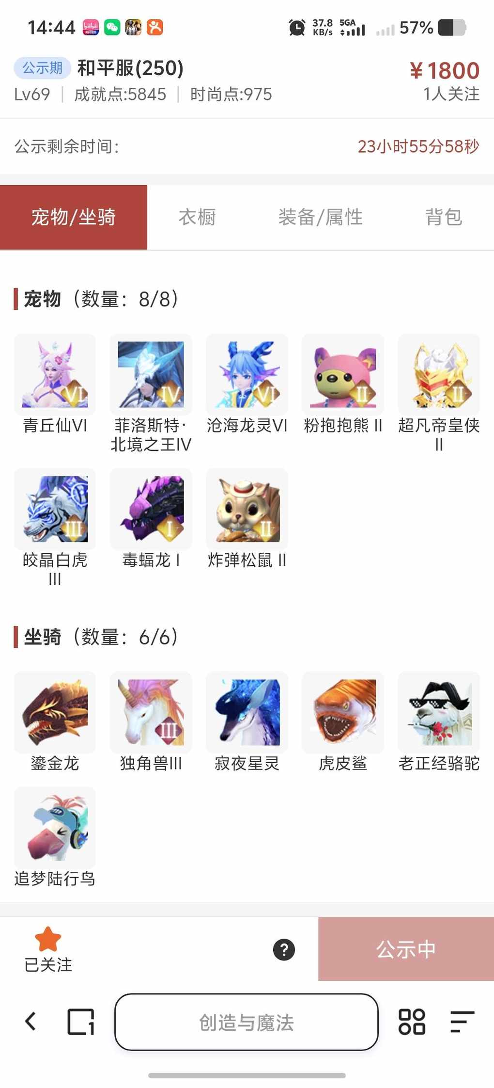 180-270大合服,美滋滋号快来看看新上架的角色~区服:和平服(250)-角色等级:Lv69https://cbe.yingxiong.com/?to=%2Fcm%2Fgoods%2F332699&gameName=cm来自舱宝鹅(创造与魔法)