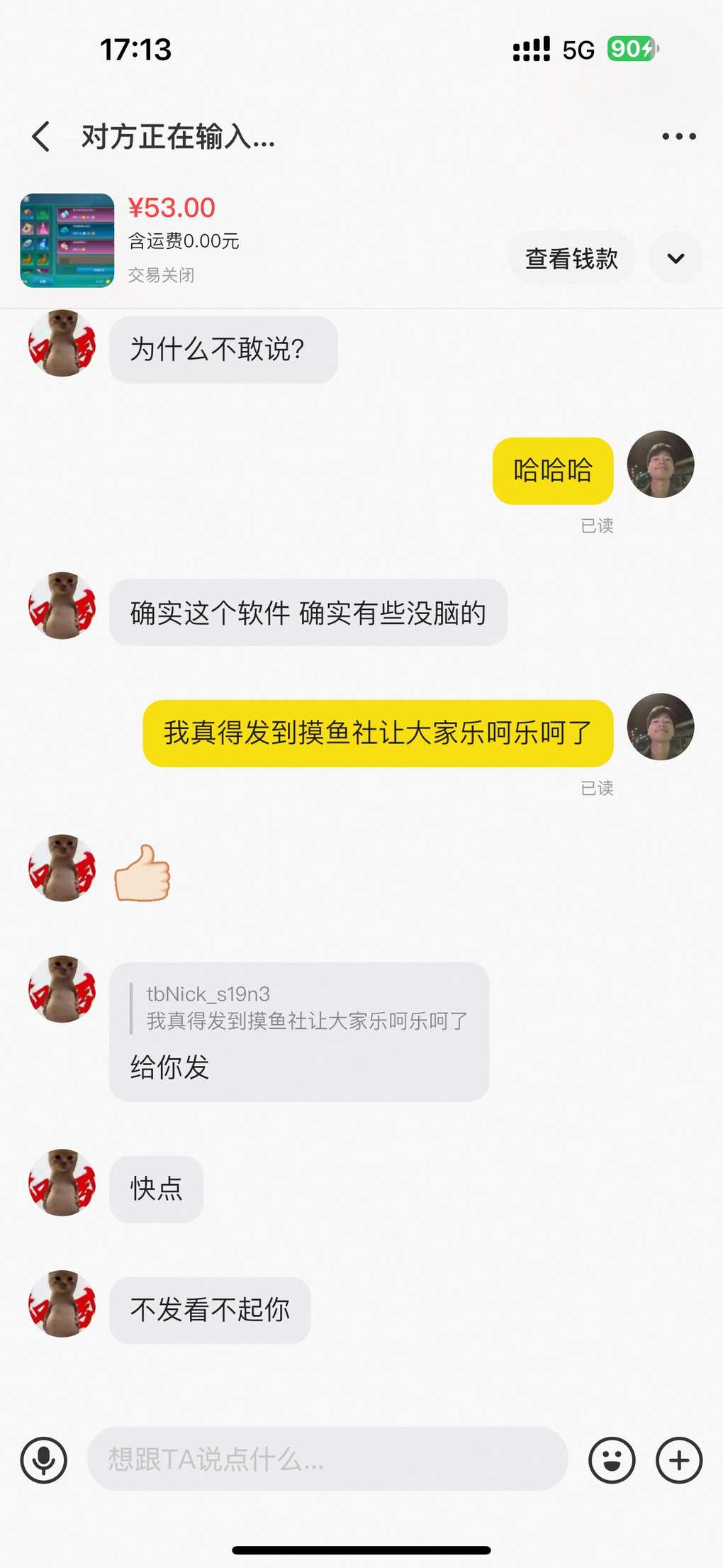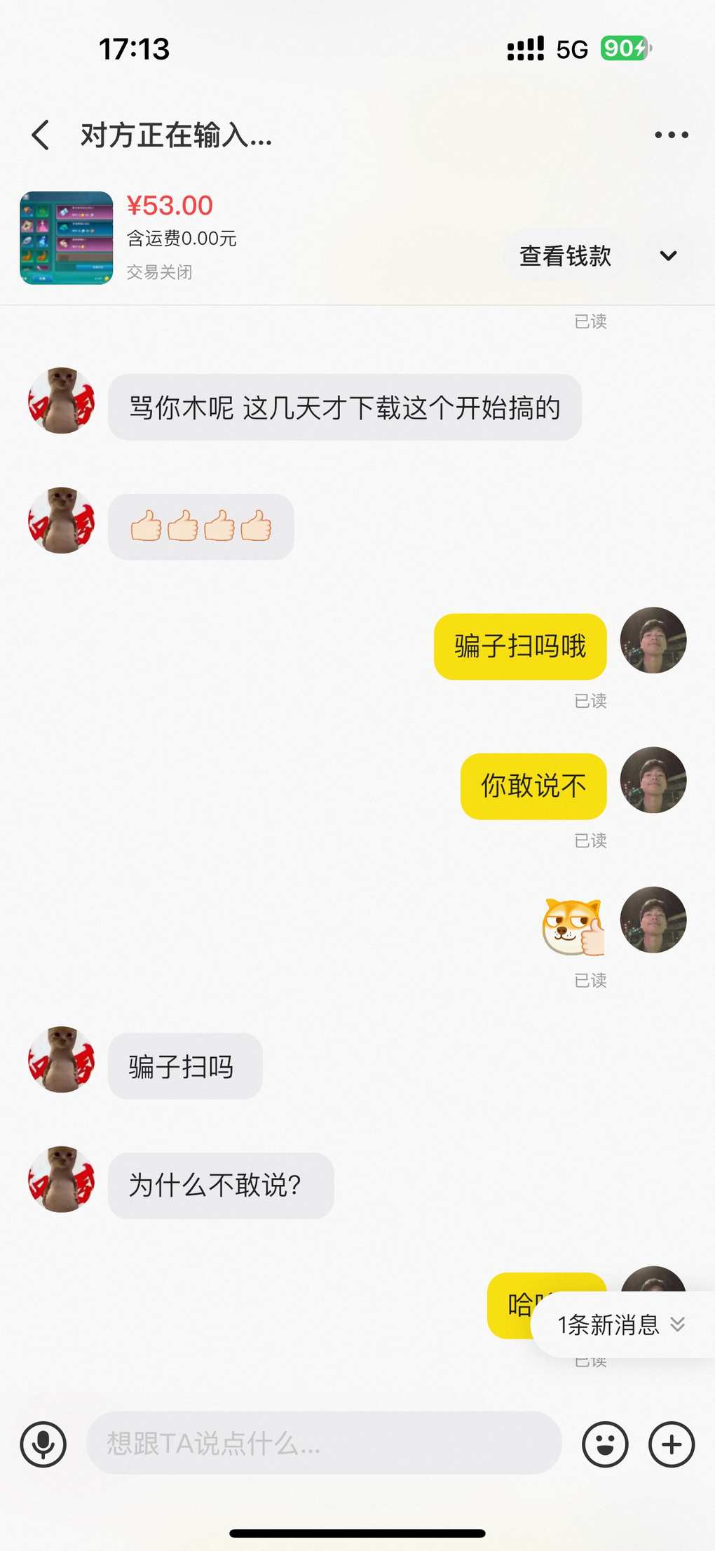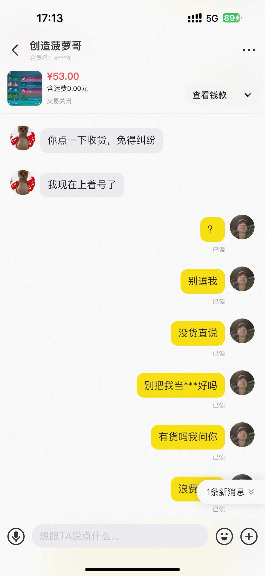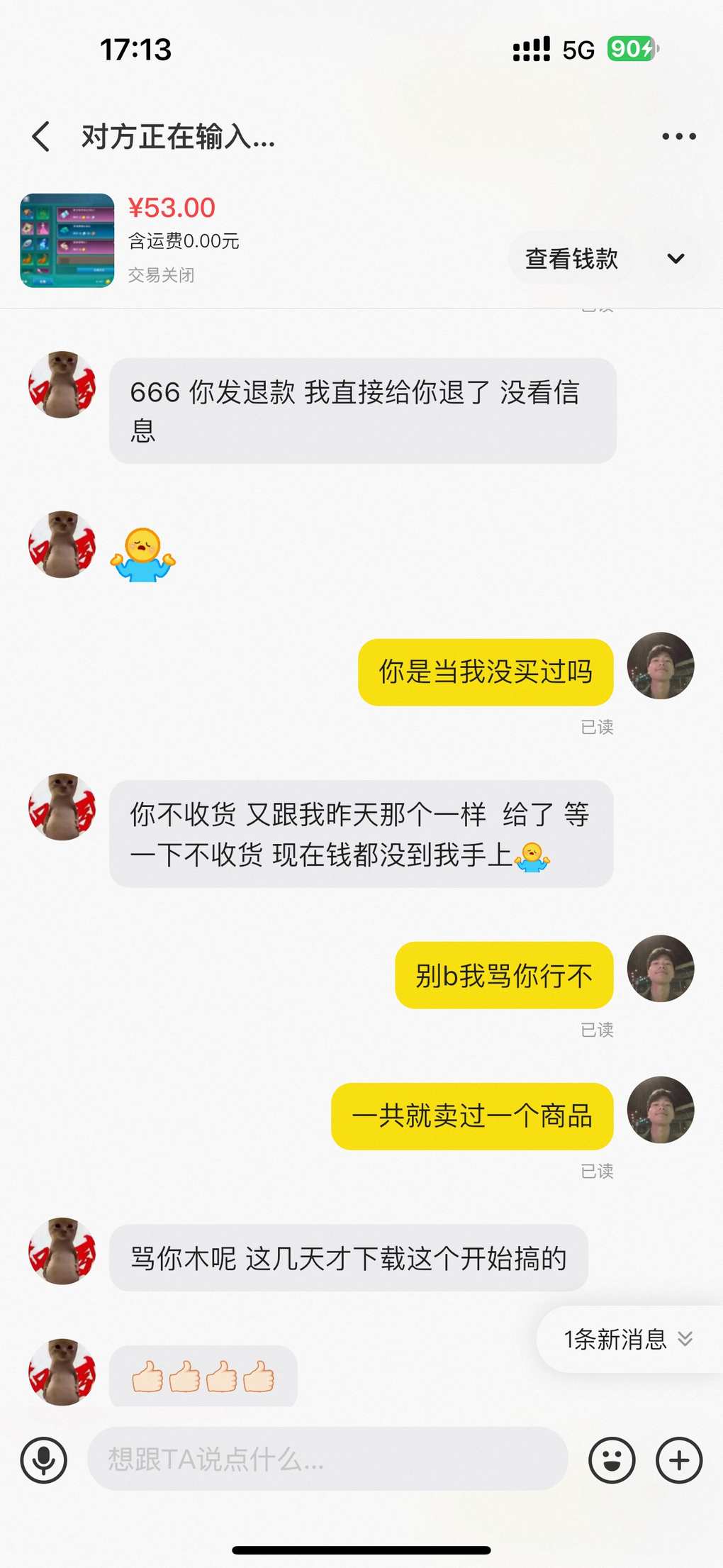 真的懒得喷,以前遇到一个骗子,也是五十多块一千金,让我先收货,说收完货金币会发我邮件