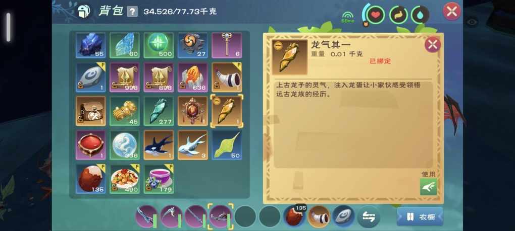 烦死了,3组龙气没有蛋,这玩意还不能销毁,还不能放箱子,占背包格子看着烦人